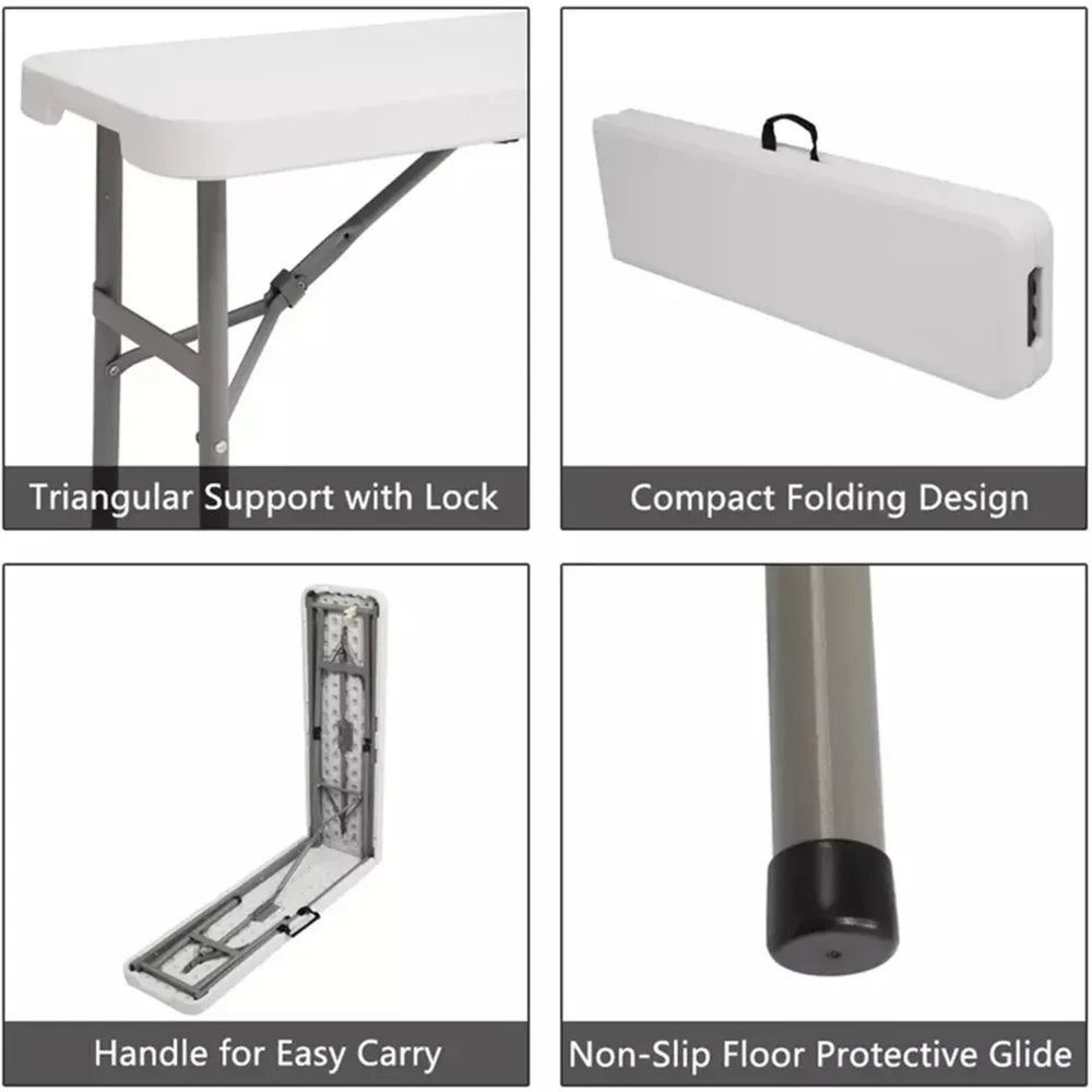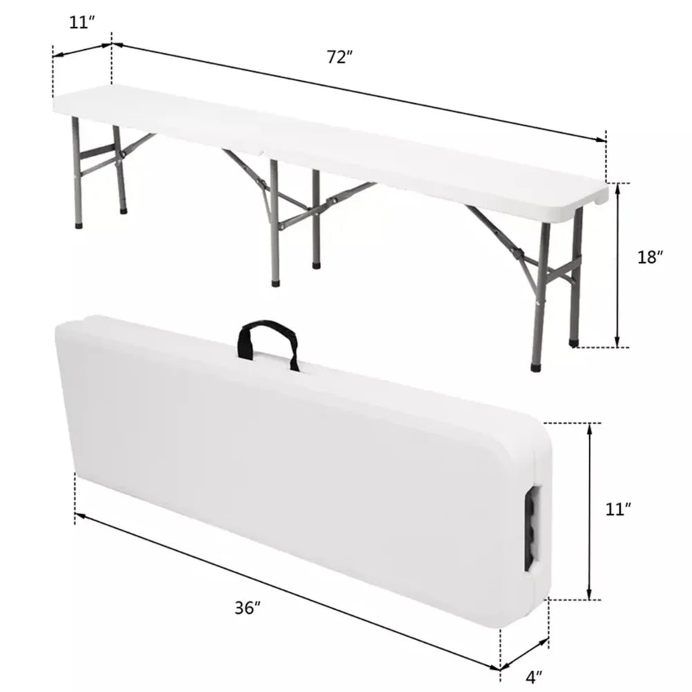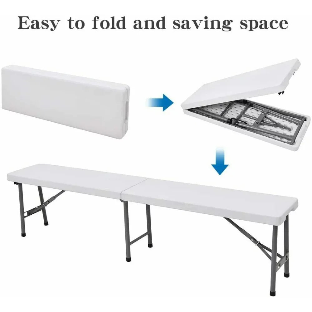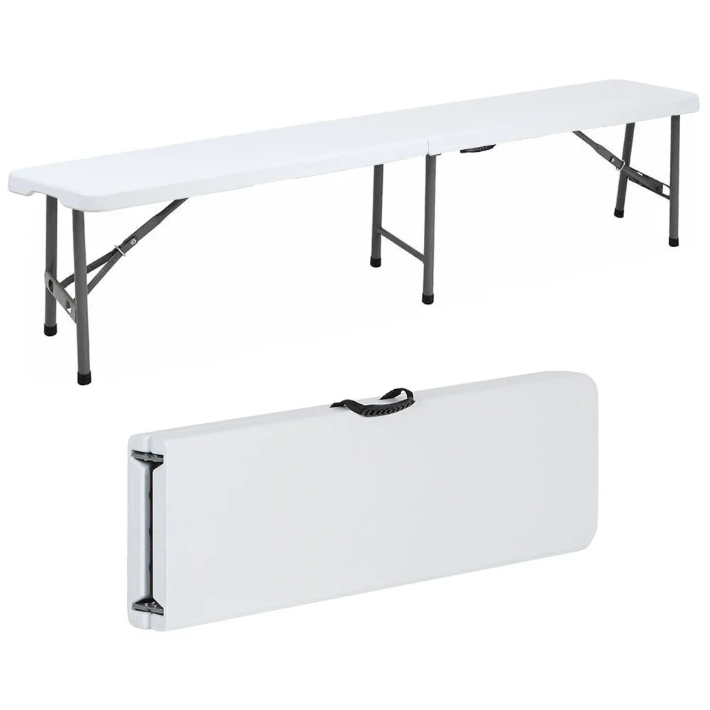 6 Ft Plastic Folding Bench Portable Indoor Outdoor Picnic Camping Bench, White, Patio Furniture , Garden Furniture VIP