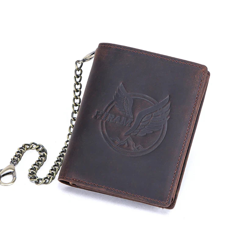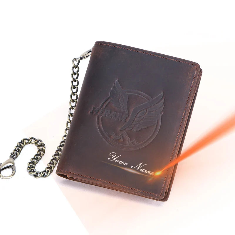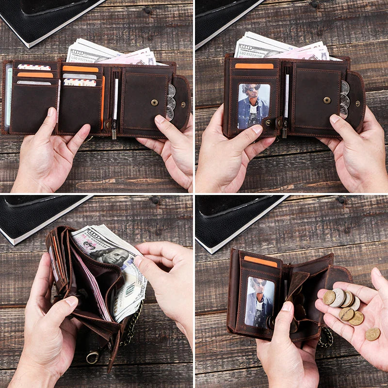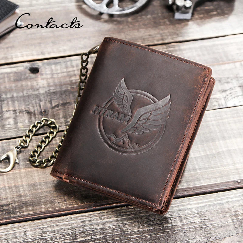 CONTACT'S Genuine Leather Wallets for Men Short Trifold Coin Purses Metal Chain RFID Card Holder Men Money Clip Men's Wallets VIP