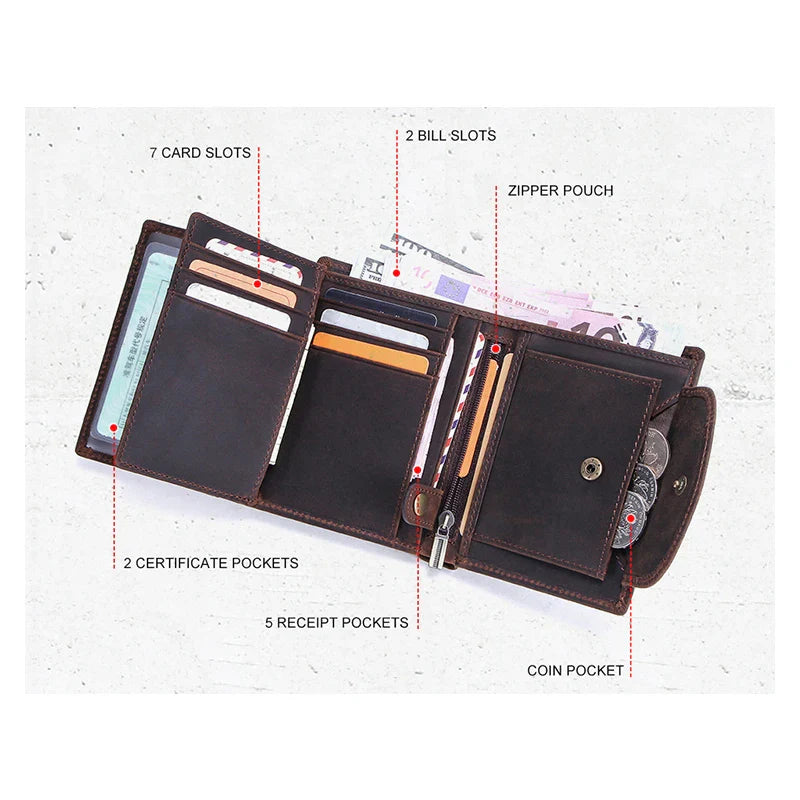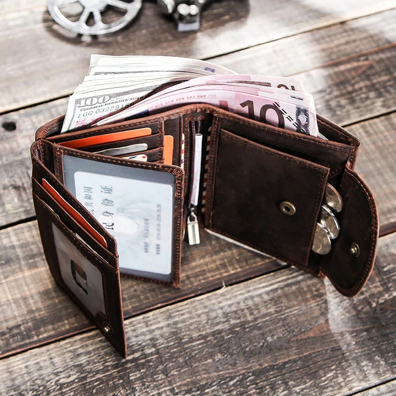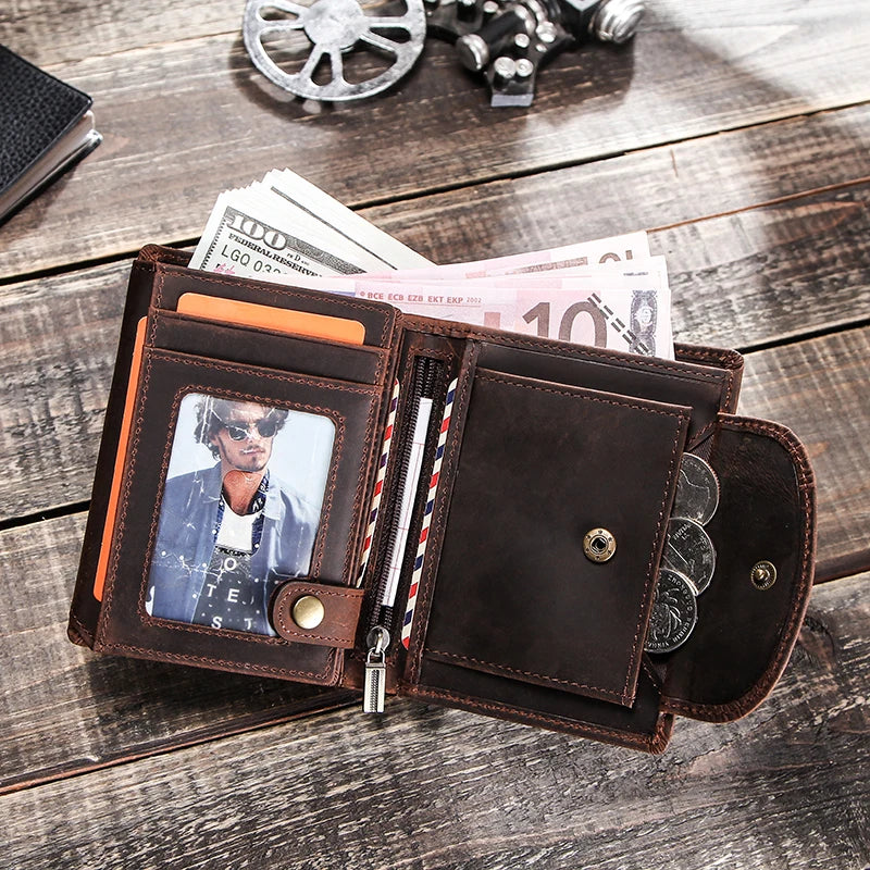 CONTACT'S Genuine Leather Wallets for Men Short Trifold Coin Purses Metal Chain RFID Card Holder Men Money Clip Men's Wallets VIP - Coffee / CN / VIP Price is backordered and will ship as soon as it is back in stock.