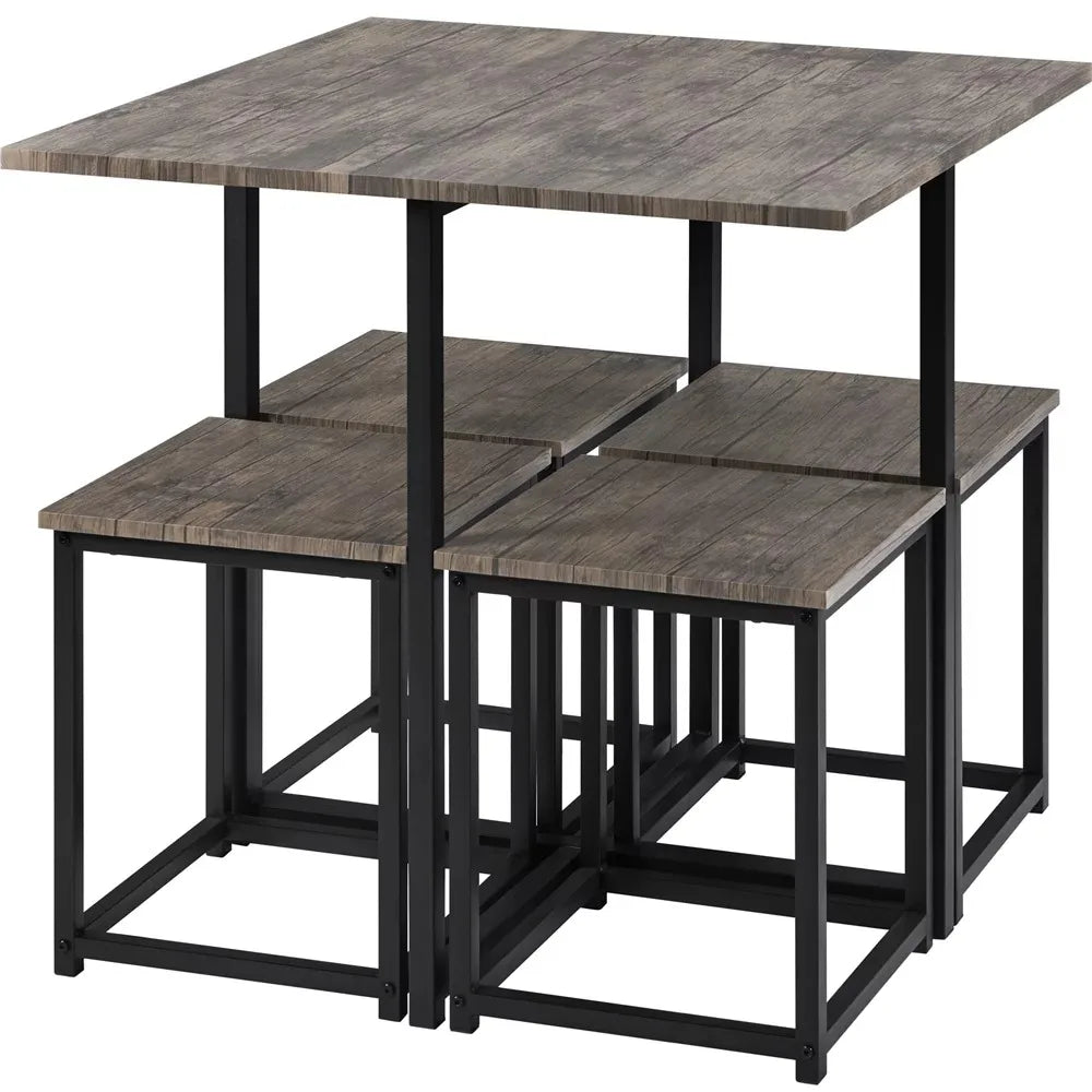 5Pcs Dining Set with Industrial Square Table and 4 Backless Chairs, Dining Room set