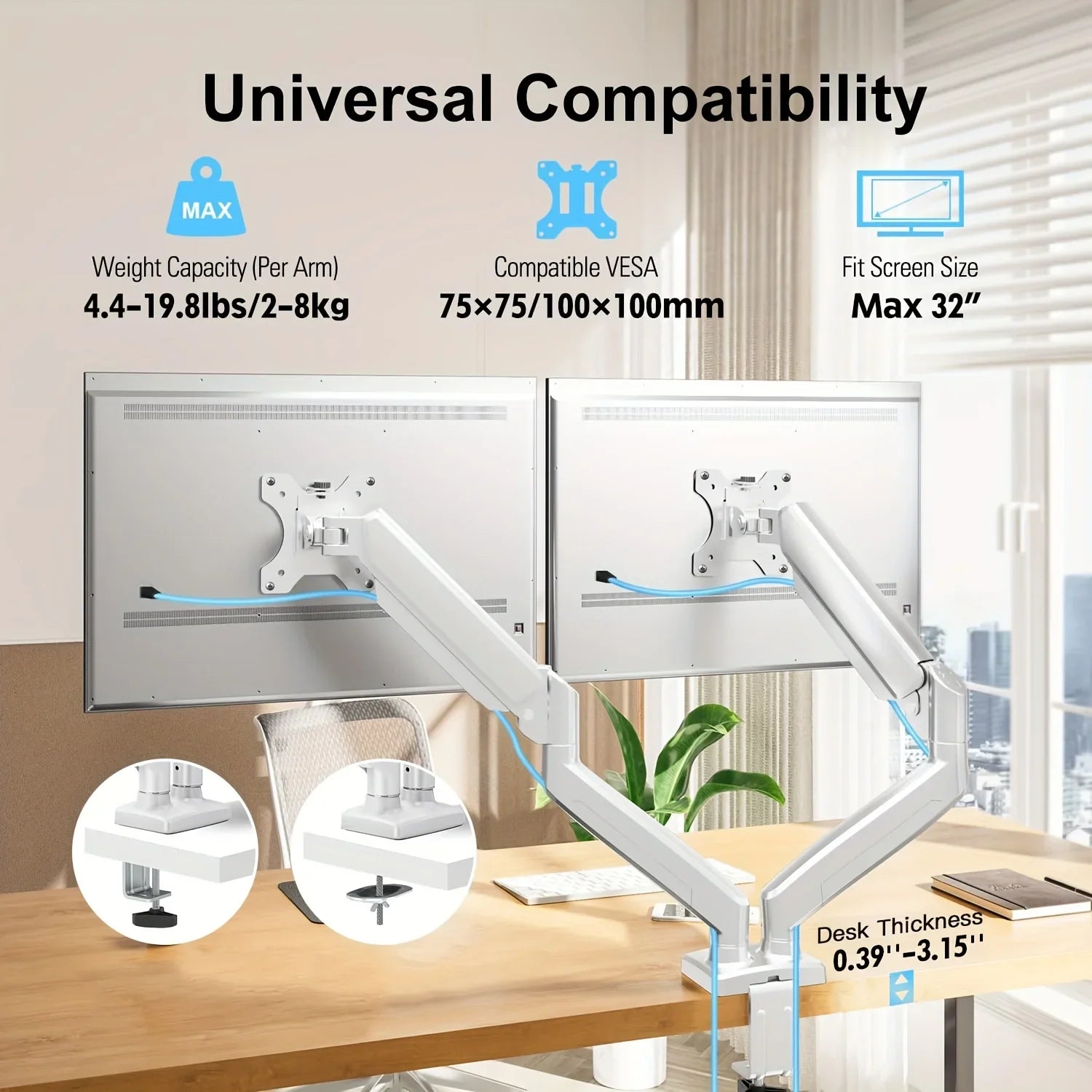 Monitor Stand for 13-32 inches Screens, Dual Monitor Mount Gas Spring, Dual Monitor Arm Full Motion Adjustable VIP
