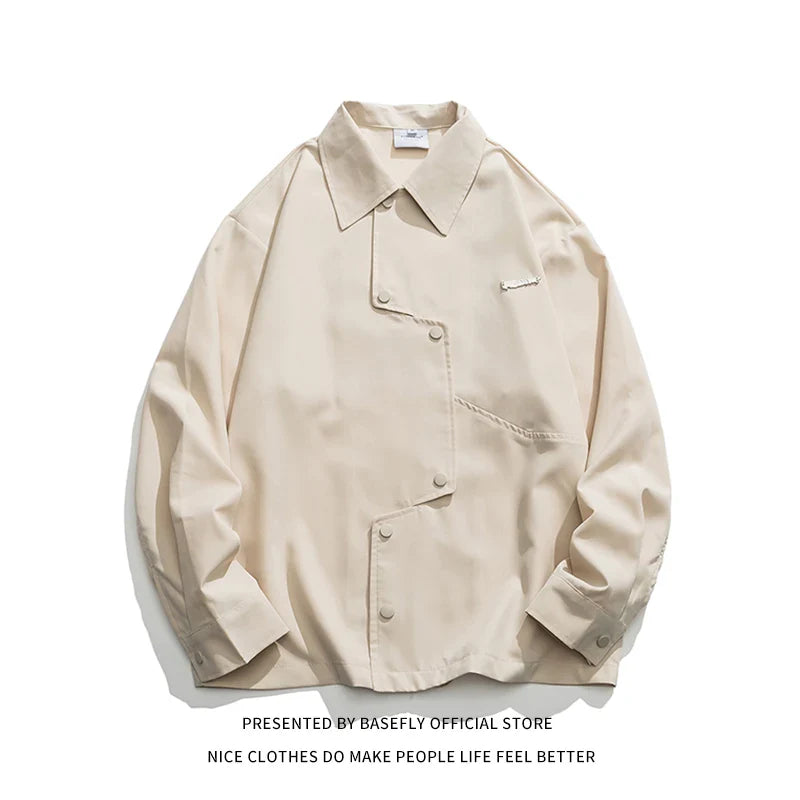 Autumn Solid Irregular Button Thin Men High Streetwear Light Weight Jacket Unisex Women Casual Coat Couple Windbreaker Shirt - Beige / XL / VIP Price is backordered and will ship as soon as it is back in stock.