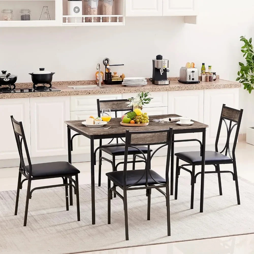 Dinette Table Dining Set for 4 Breakfast Nook 5-Piece Indoor Modern Rectangular Table Kitchen Classic Brown Furniture Chair Room