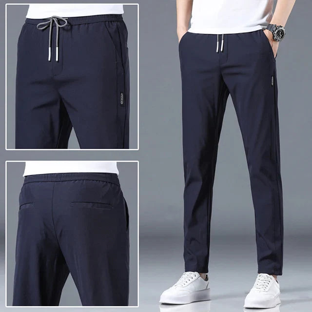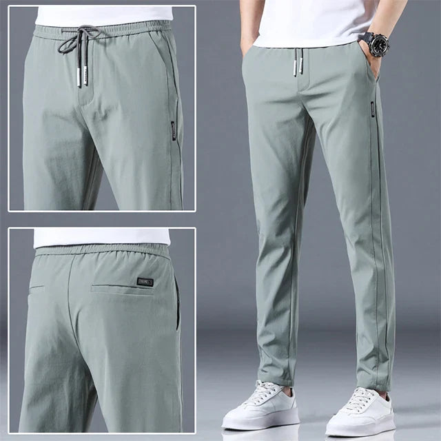 Ice Silk Men's Pants 2024 Summer New Black Gray Thin Business Casual Pants Outdoor Elastic Breathable Straight Leg Sweatpants