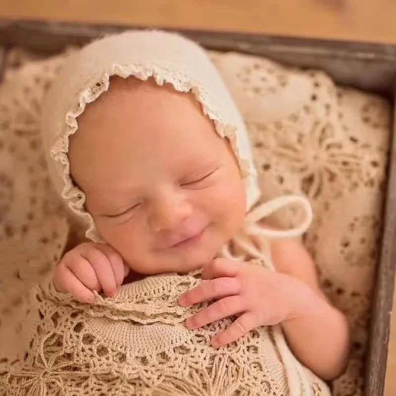 Knitting Baby Hat Adjustable Lace Boy Girl Beanie Cap for 0-2 Months Newborn Photography Props Bonnet Photo Accessories