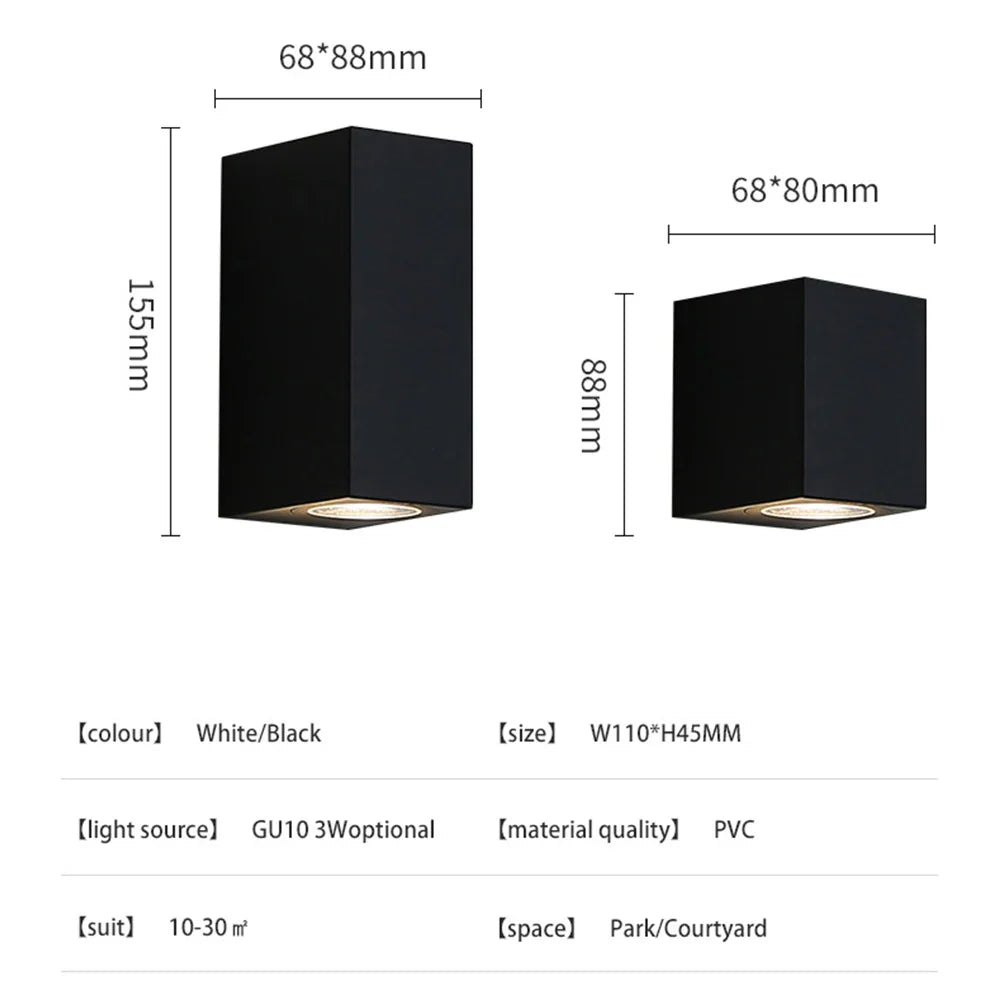 Led Wall Lamp Outdoor Waterproof Up Down GU10 AC85-265V PVC Lighting Garden Decoration Wall Lights for Bedroom Living Room