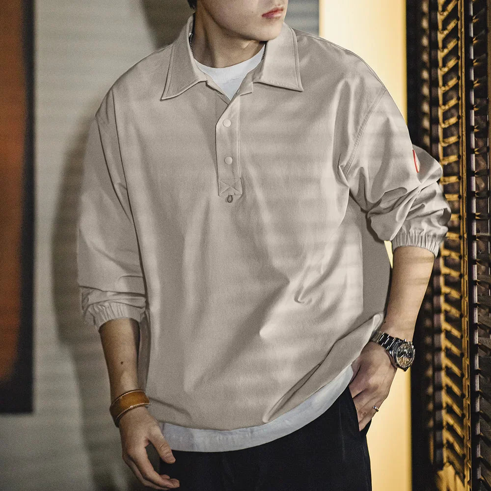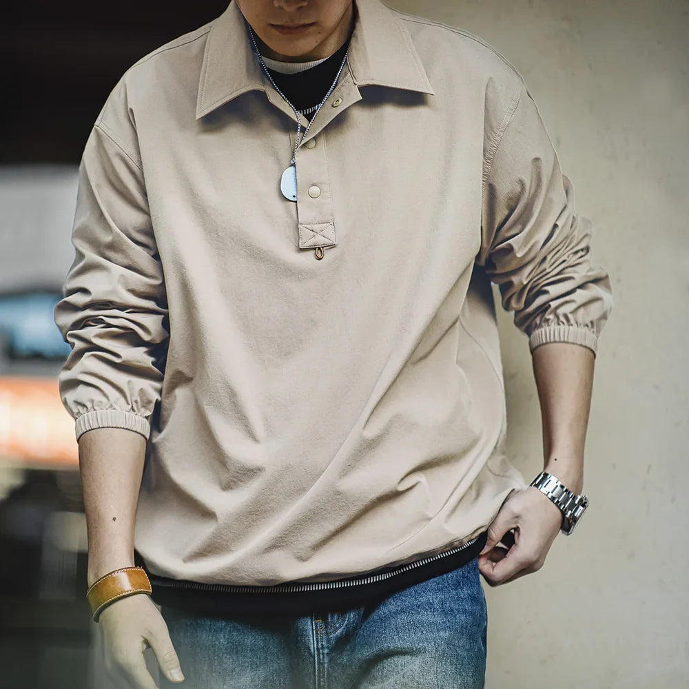 Maden Retro Stretch Polo Sweatshirt Sports Street Style Hoodie Loose Lapel Long-sleeved T-shirt Tops for Men's Spring And Autumn