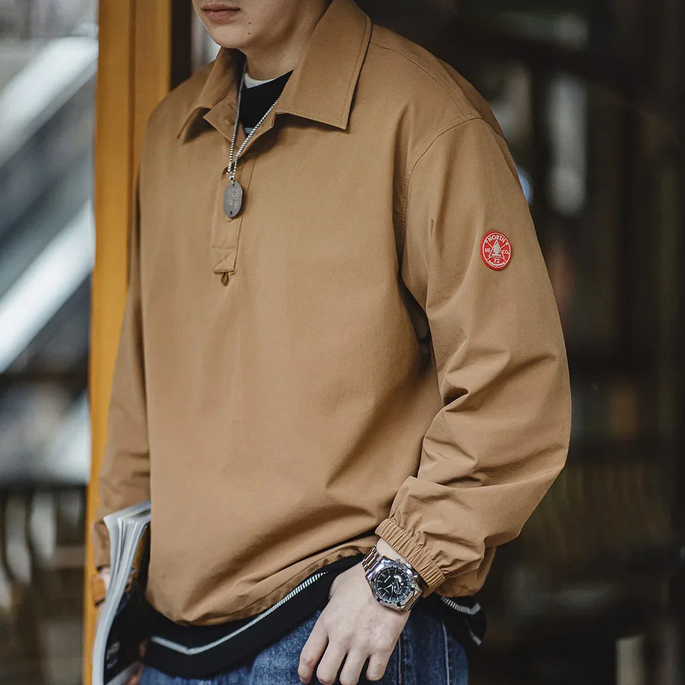 Maden Retro Stretch Polo Sweatshirt Sports Street Style Hoodie Loose Lapel Long-sleeved T-shirt Tops for Men's Spring And Autumn - Caramel / L / VIP Price is backordered and will ship as soon as it is back in stock.