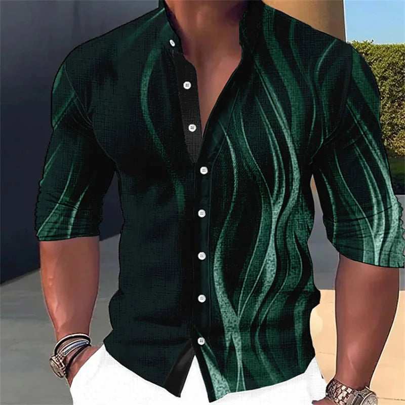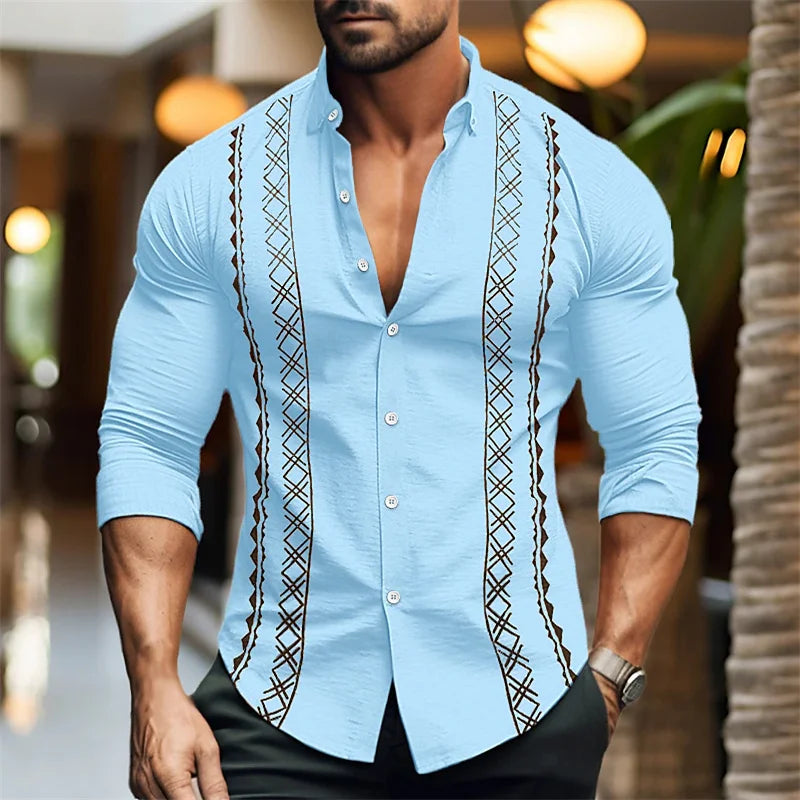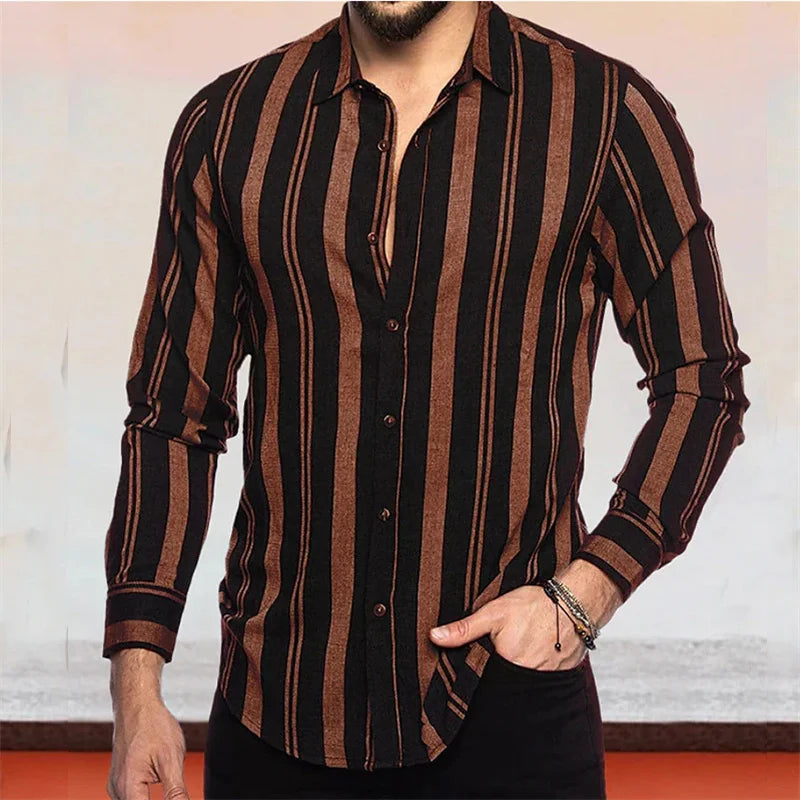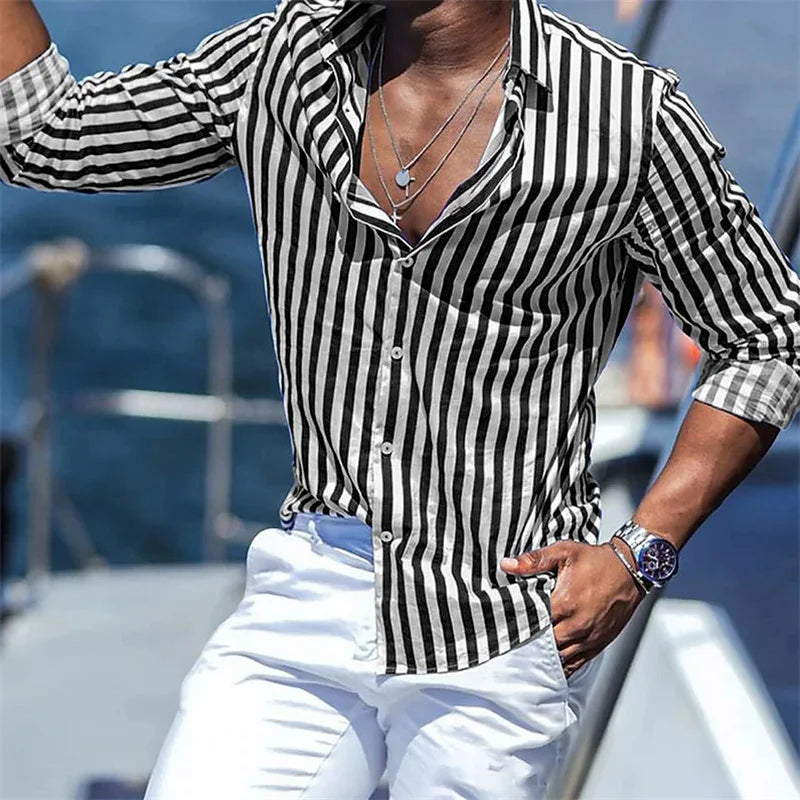 Men's button-up shirt casual business spring and summer large size long-sleeved striped print work daily vacation shirt