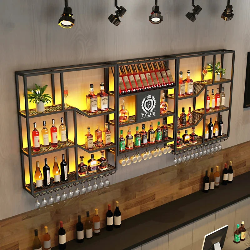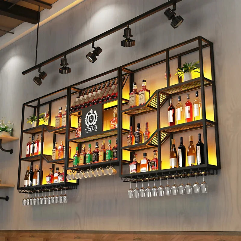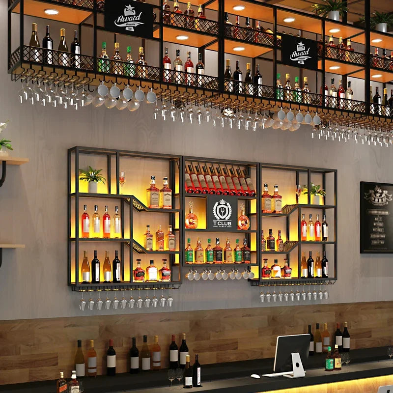Metalic Wall Mounted Wine Cabinet Restaurant Patio Metalic Small Bar Cabinet Storage Modern Adega Barzinho Kitchen Furniture