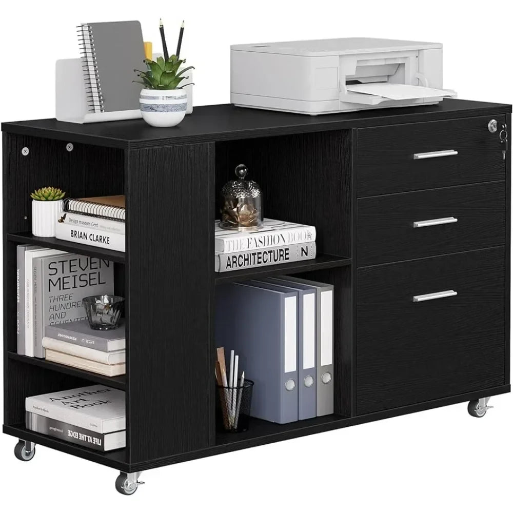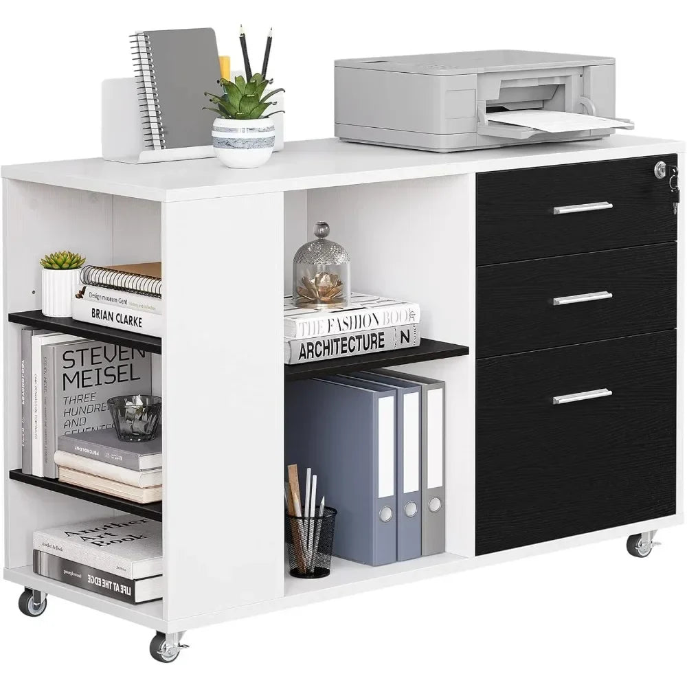 Mobile Wood File Cabinet Filing Cabinets 3 Drawer Lateral Filing Cabinet With Open Side Storage Shelves Freight Free - WHITE / United States / VIP Price is backordered and will ship as soon as it is back in stock.