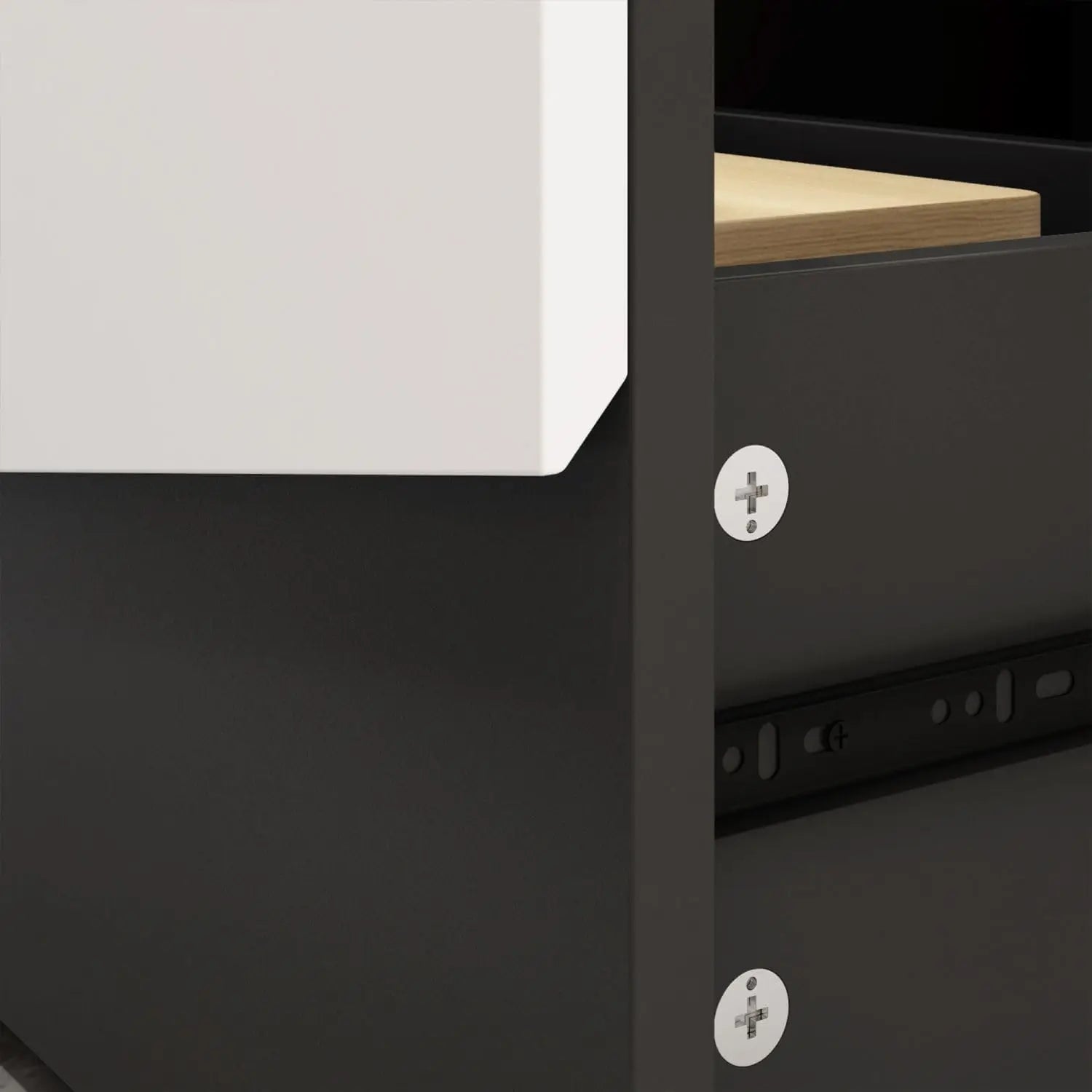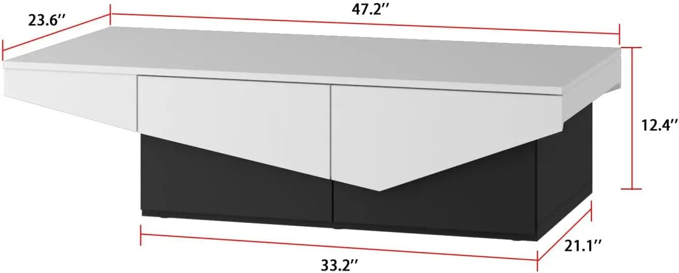 Modern Coffee Table with 4 Drawers, Central Table Living Room with Storage, White and Black Wood - United States / VIP Price is backordered and will ship as soon as it is back in stock.