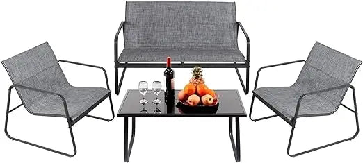 PAIQIAN 4-Pieces Patio Furniture Set Patio Furniture Outdoor Furniture Modern Conversation Set Bistro Set with Loveseat and Coff