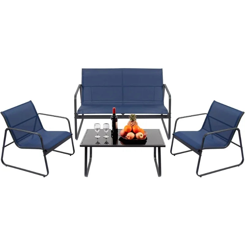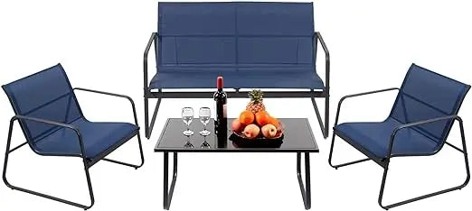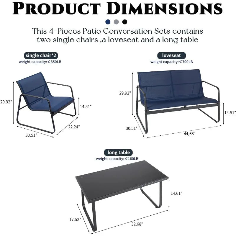 PAIQIAN 4-Pieces Patio Furniture Set Patio Furniture Outdoor Furniture Modern Conversation Set Bistro Set with Loveseat and Coff - Modern Blue4-Piece / United States / VIP Price is backordered and will ship as soon as it is back in stock.