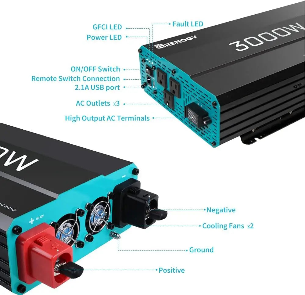Renogy 3000W Pure Sine Wave Inverter 12V DC to 120V AC Converter