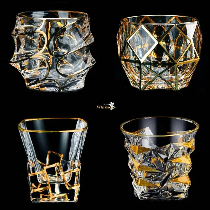 Whiskey Glass Tumblers Set Gold Line Wine Whisky Glasses Golden Painted Crystal Barware Multi-function Beer Cocktail - Waves / 280-300ML / VIP Price is backordered and will ship as soon as it is back in stock.