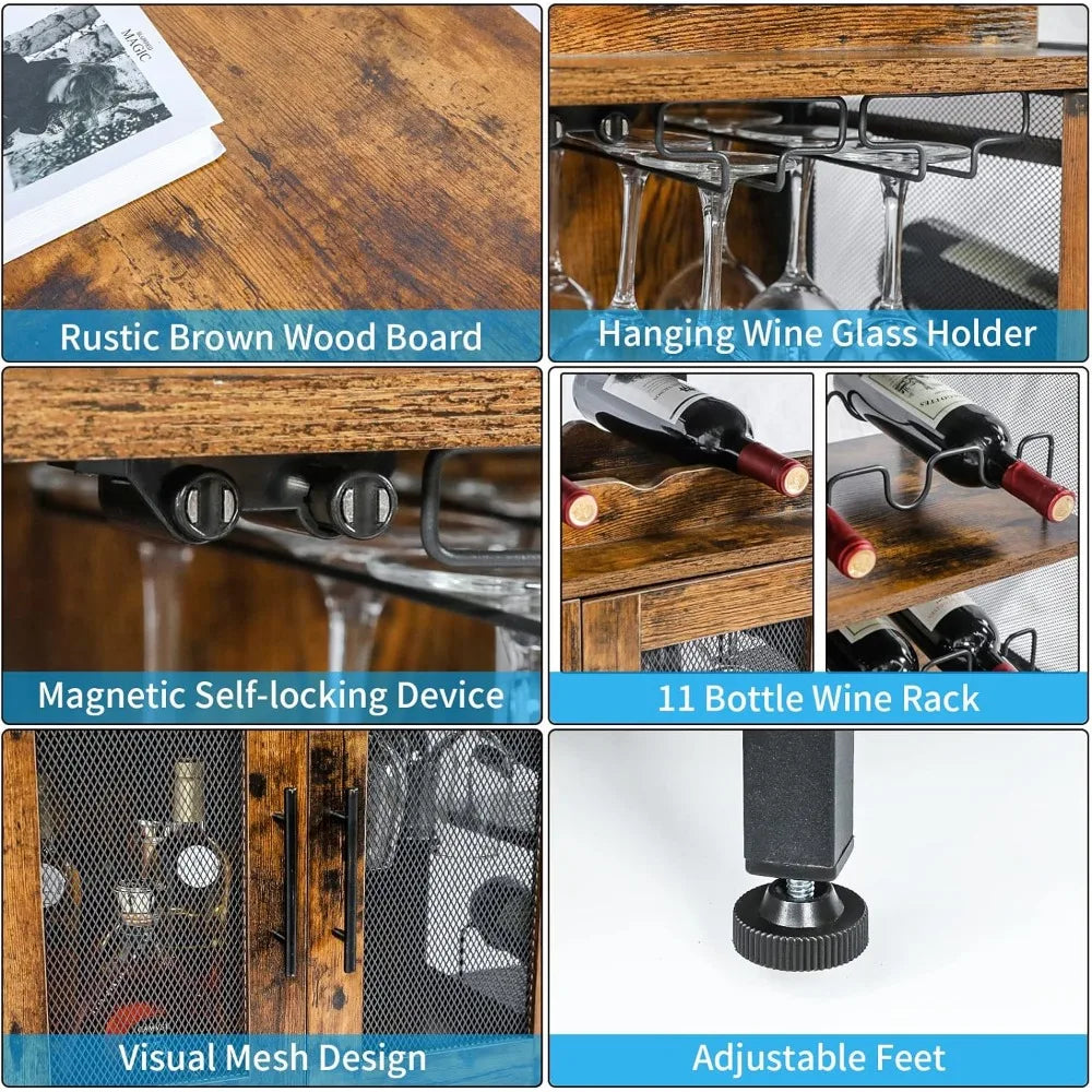 Wine Bar Rack Cabinet with Detachable Wine Rack, Coffee Bar Cabinet with Glass Holder,Small Sideboard and Cabinet with Mesh Door
