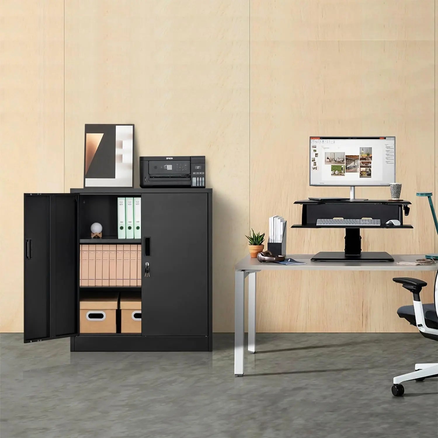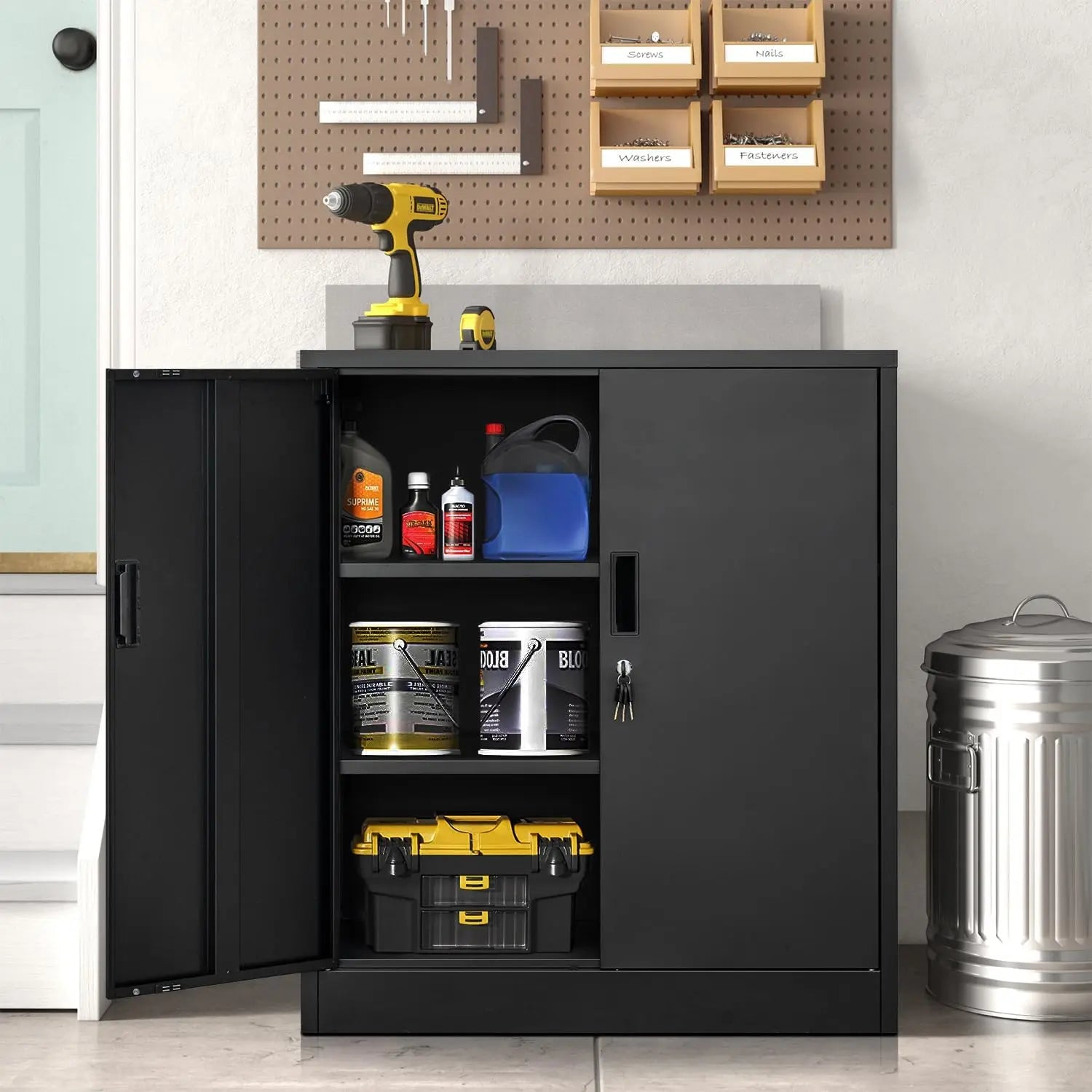 YEEZER Metal Storage Cabinet with 2 Shelves. Steel Locking Storage Cabinet for Home, Office, Garage, Utility Room and Basement, - United States / VIP Price is backordered and will ship as soon as it is back in stock.