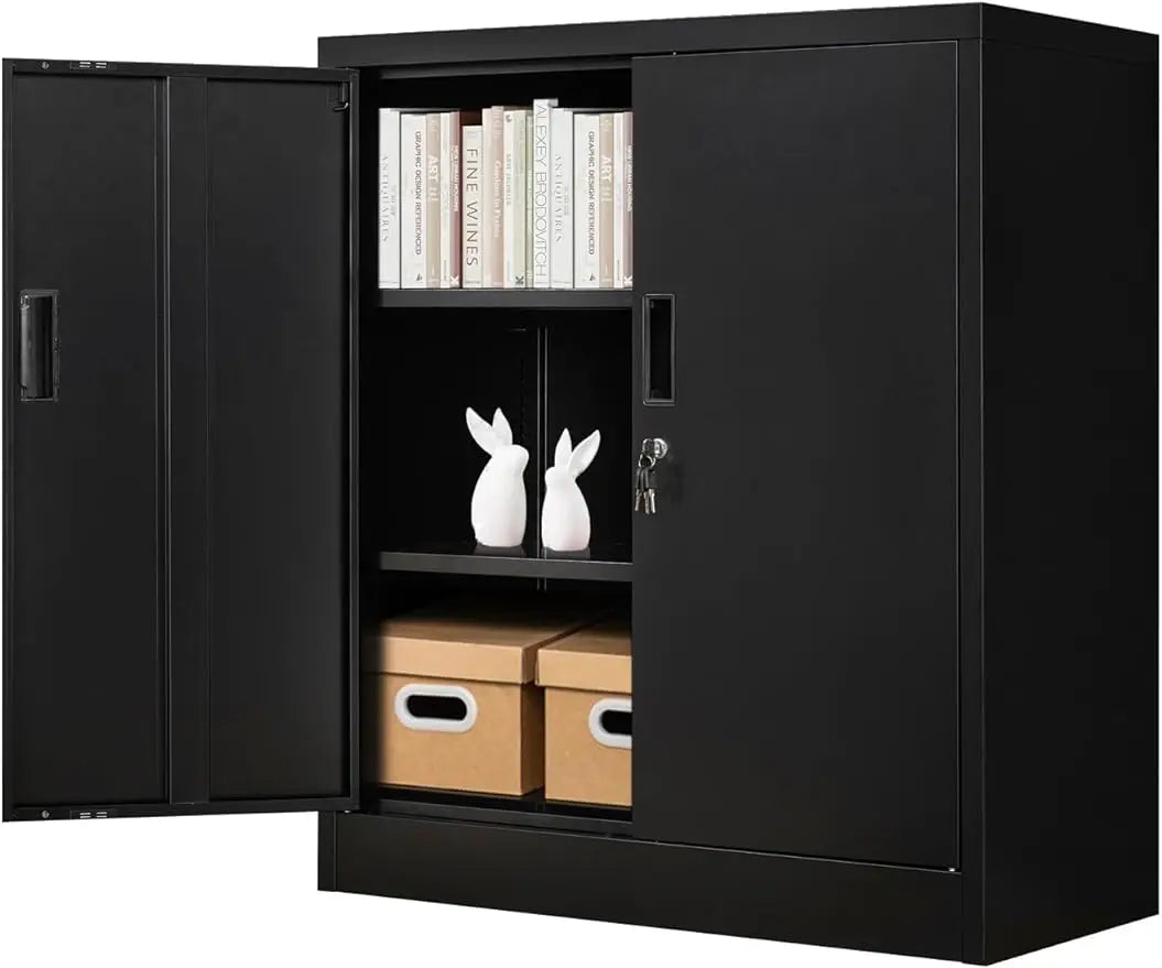YEEZER Metal Storage Cabinet with 2 Shelves. Steel Locking Storage Cabinet for Home, Office, Garage, Utility Room and Basement,