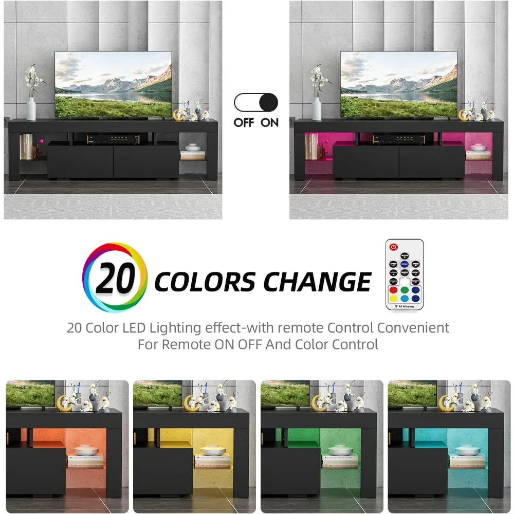 YESHOMY Modern LED TV Stand for Televisions up to 70 Inch with Glass Shelves and Drawer, Gaming Entertainment Center with - Black / United States / VIP Price is backordered and will ship as soon as it is back in stock.