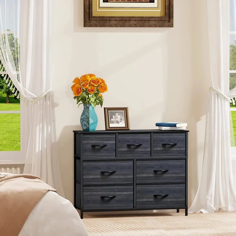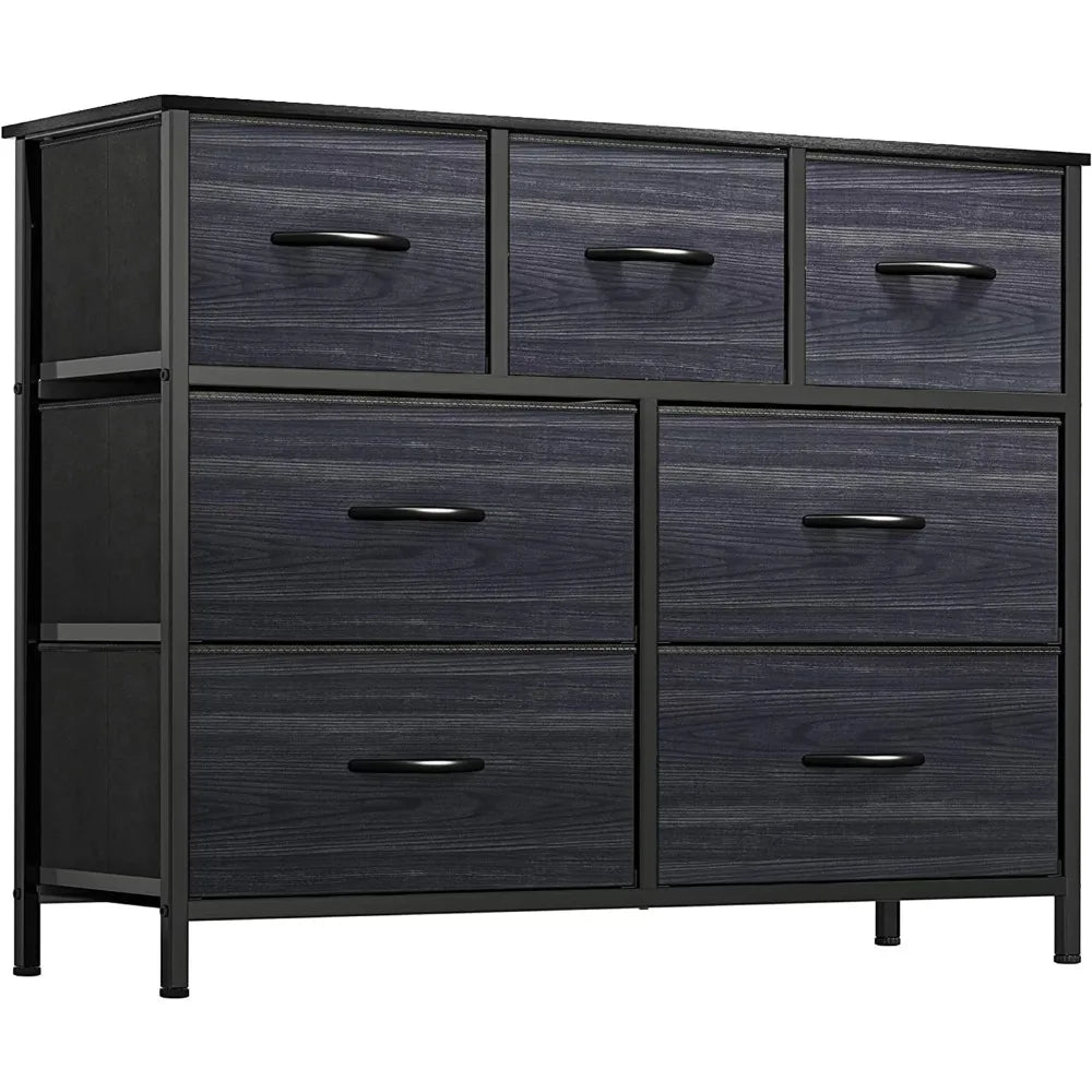 YITAHOME Dresser TV Stand, Dresser for Bedroom, Fabric Dresser with 7 Drawers, Furniture Storage Tower Cabinet,Black Wood Grain